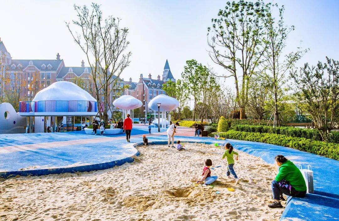 在这里,孩子们在玩耍中成长,在互动中思考,在现代科技中感受自然的魅力;青少年塑造健康体魄;成年人短暂的抛下工作,在建筑之间得到片刻休息。