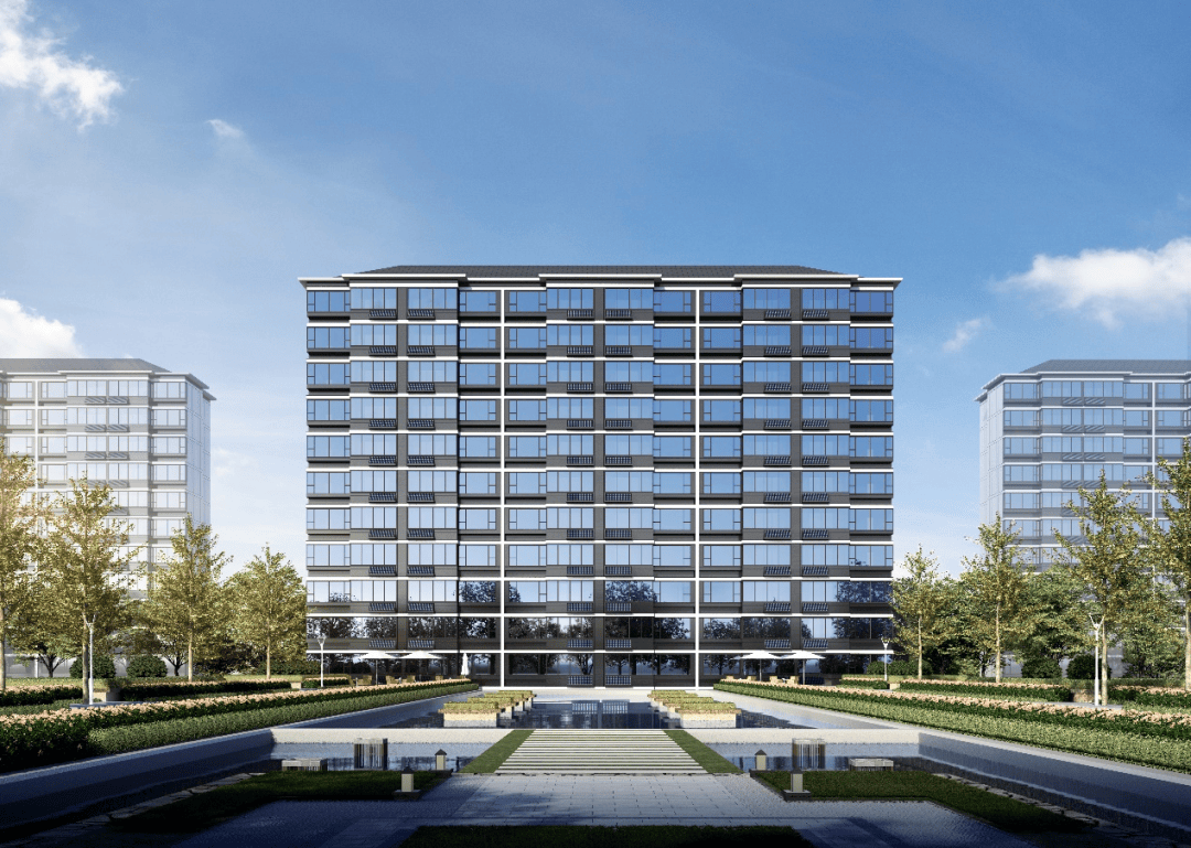 外立面采用了现代时尚的风格,大玻璃幕墙搭配高级灰色调,通过线条的紧密排布、视觉的横向延伸,营造出充满秩序的几何美感。