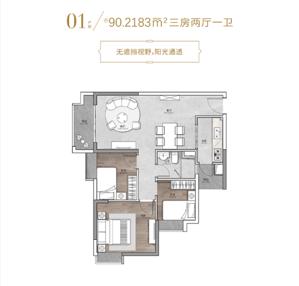 对于追求更高生活品质的改善型家庭,95-99㎡的三房两厅两卫户型是当之无愧的热门之选。这个户型最大的亮点在于主卧套房的设计。主卧不仅面积宽敞,还配备了独立的卫生间,保证了主人的私密性和尊贵感。独立卫生间内设施齐全,干湿分离,让早起洗漱不再拥挤。过道面积紧凑,几乎没有浪费,将更多的面积留给了功能房间。厨卫全明设计,避免了采光死角,让厨房和卫生间也能享受到阳光的沐浴,保持干燥卫生。主阳台朝南,通风效果好,视野开阔,是欣赏城市美景的绝佳位置。