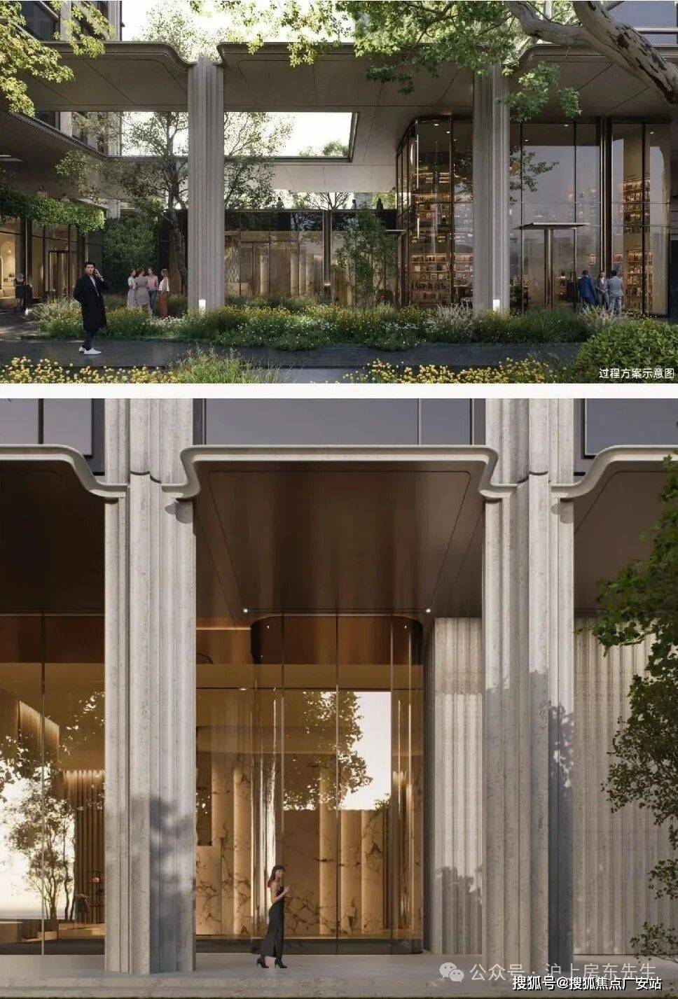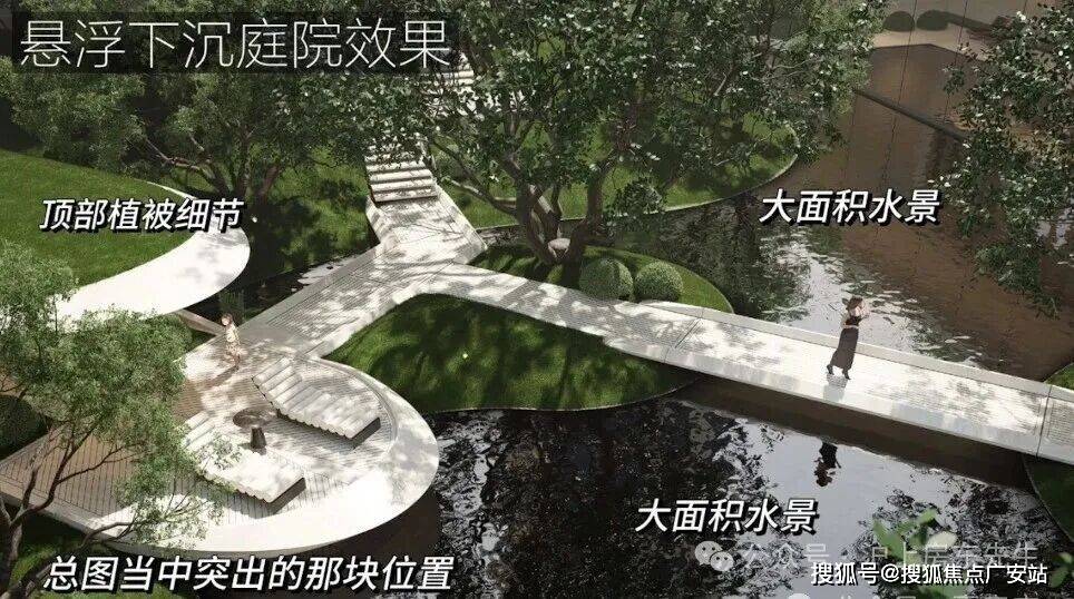 所有楼栋一层全架空,形成风雨连廊和下沉庭院;社区内中央水轴串联四大主题园区(亲子乐园、静谧花园等),甚至引入雾森系统营造“仙境感”。