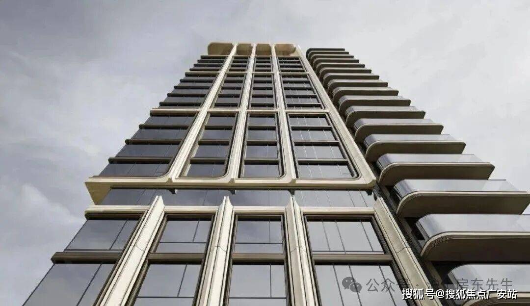 塔冠如灯塔般指引回家,中段以浪白与夕阳金游艇舱勾勒出270°江景画框,下段石材柱廊则向上生长出ART-DECO经典线条,整体既精致又有腔调。