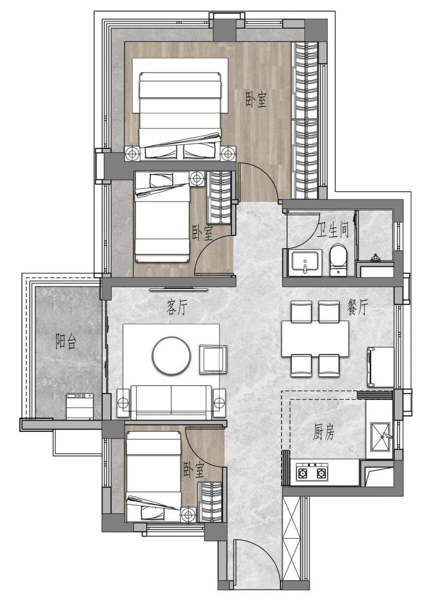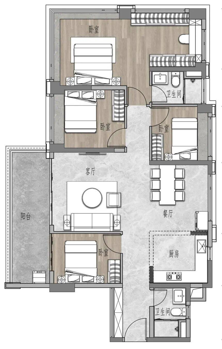 此外,该户型还带有独立的家政间,这是一个非常贴心的设计。洗衣、晾晒、储物等功能都可以集中在这里进行,解放了阳台的空间,也让家务打理变得更加方便和高效。带装修交付的标准,省去了业主后续装修的麻烦和时间,让大家可以拎包入住,快速开启新生活。这款户型无论是从空间尺度、功能布局还是细节处理上,都体现了保利对于改善型需求的深刻理解。它是三代同堂家庭的理想之选,让每一个家庭成员都能在这里找到属于自己的舒适角落。